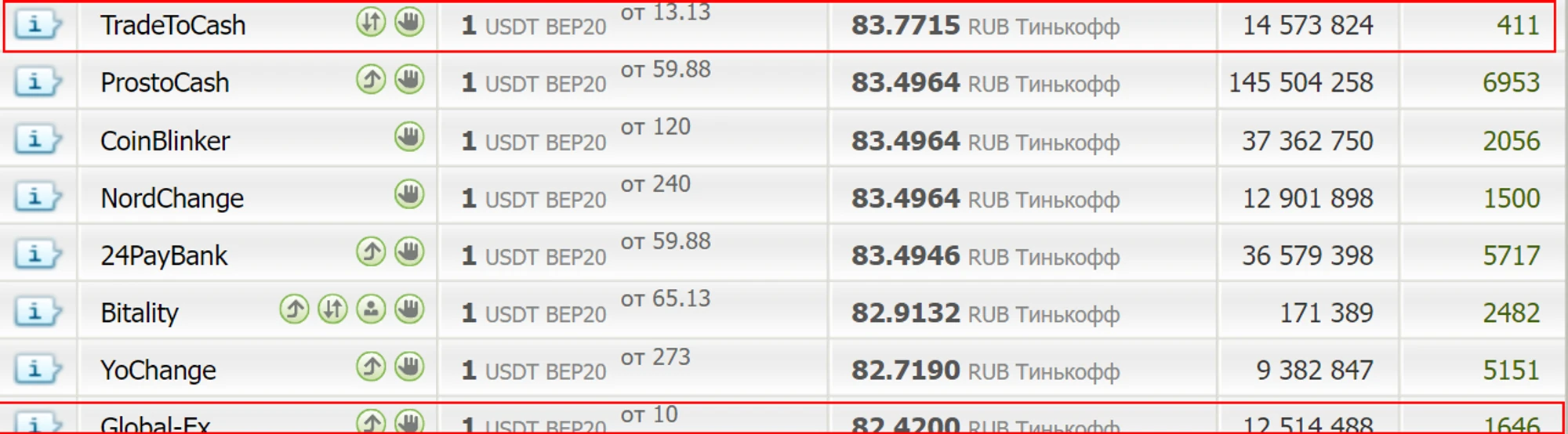 Обратите внимание: чем выше рейтинг обменника, и чем ниже минимальная сумма обмена криптовалюты — тем ниже будет обменный курс. Маленькие суммы обналичивать невыгодно.