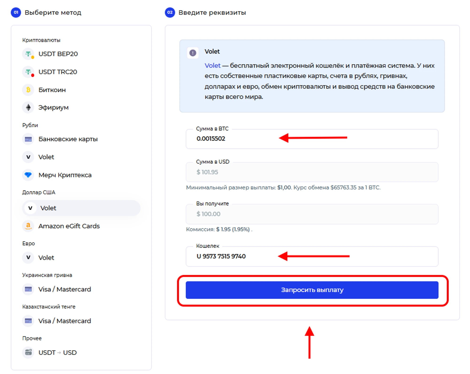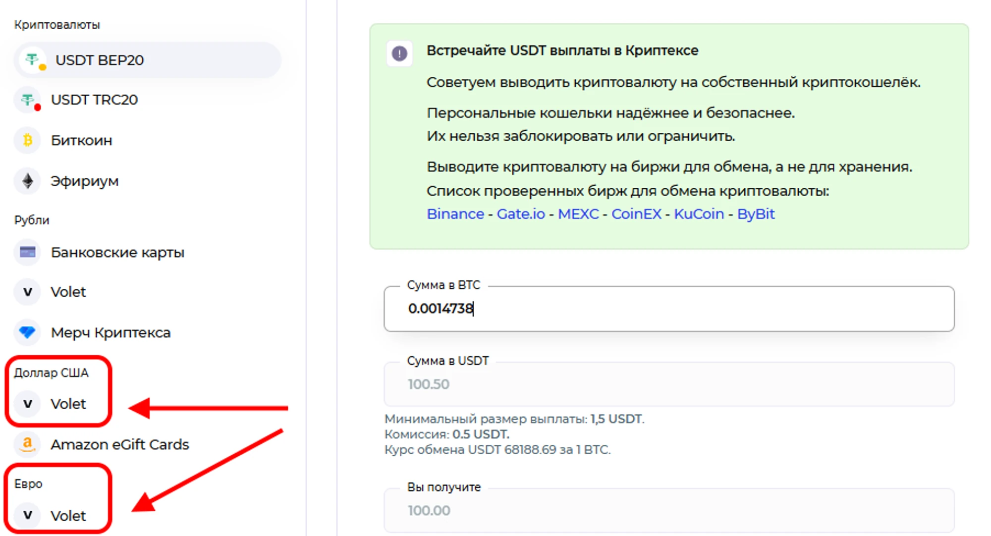 Как вывести деньги на аккаунт Volet с Криптекса?