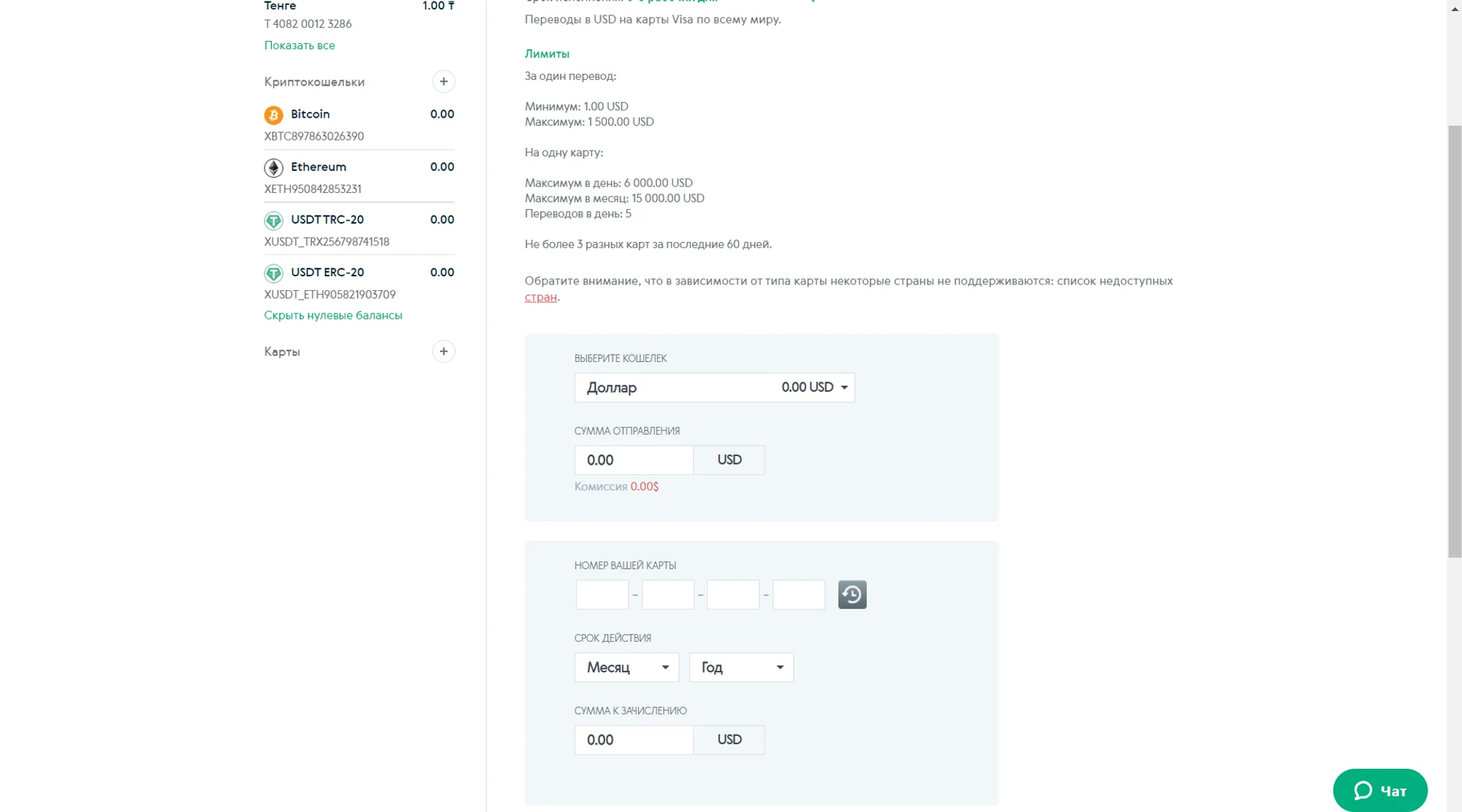 3. Если у вас возникли вопросы по заполнению информации, обратитесь в чат поддержки сервиса Volet.