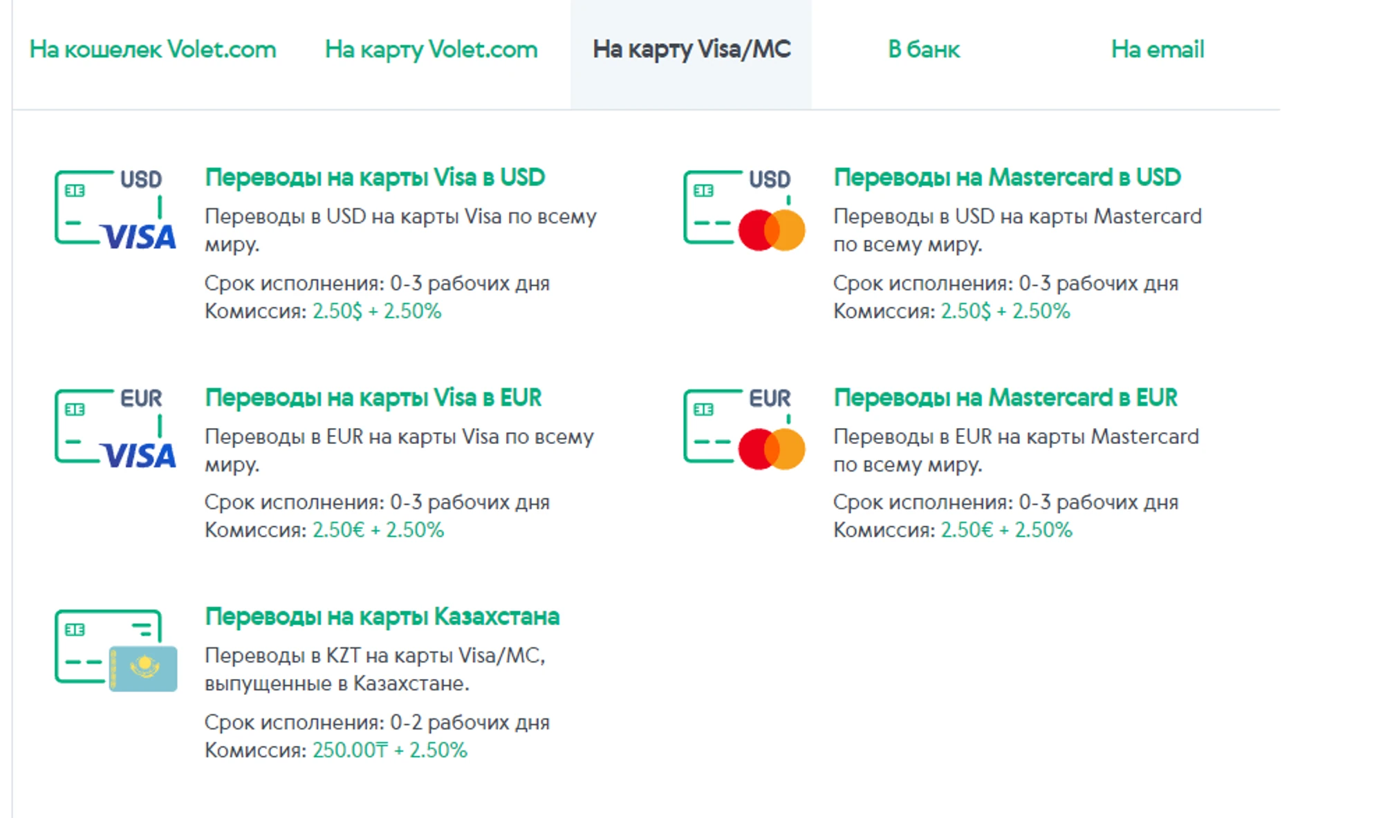 В зависимости от типа карты, некоторые страны могут не поддерживаться сервисом Volet. Проверьте работает ли Volet в вашей стране в вашем личном кабинете Volet.com.