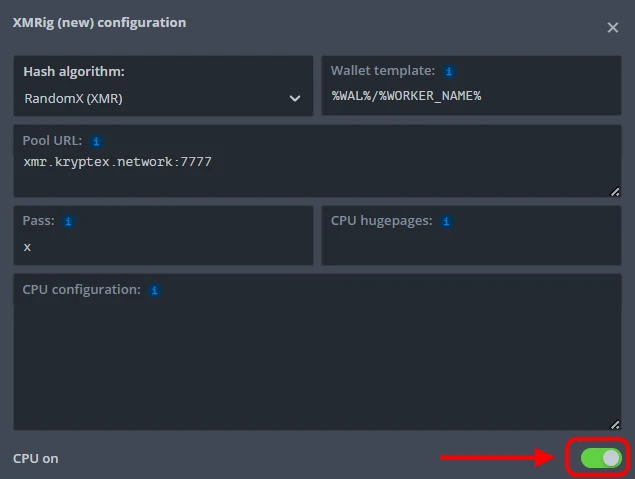 • Pool address: xmr.kryptex.network:7029