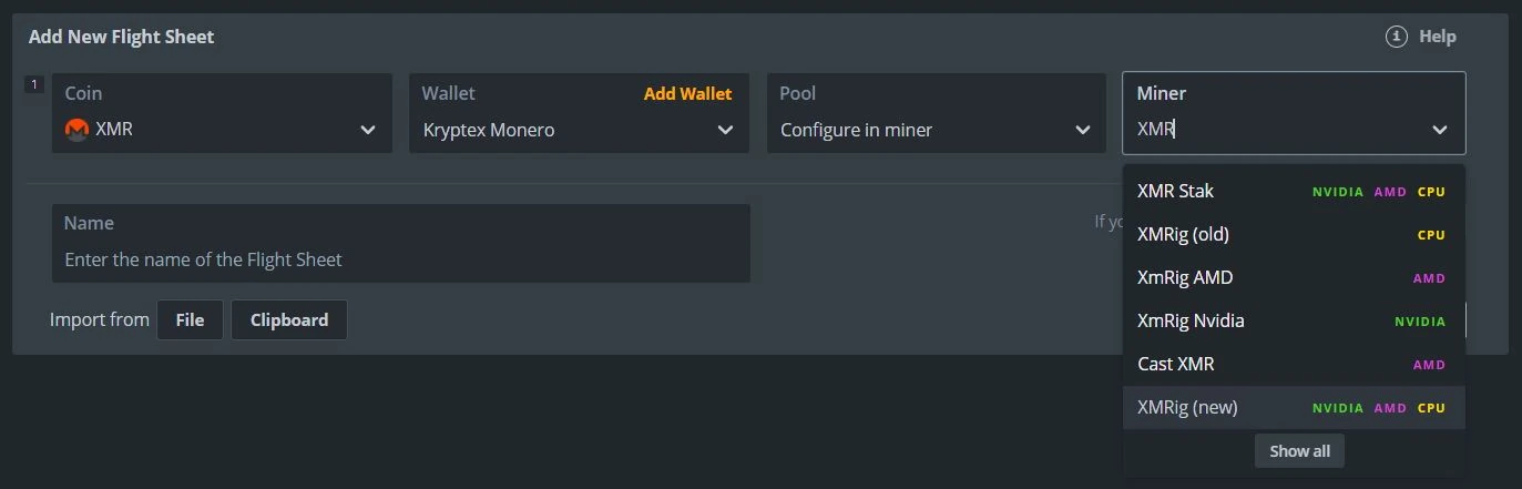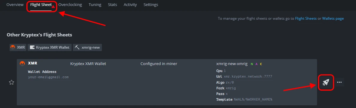 Let's create the Flight Sheet for your worker