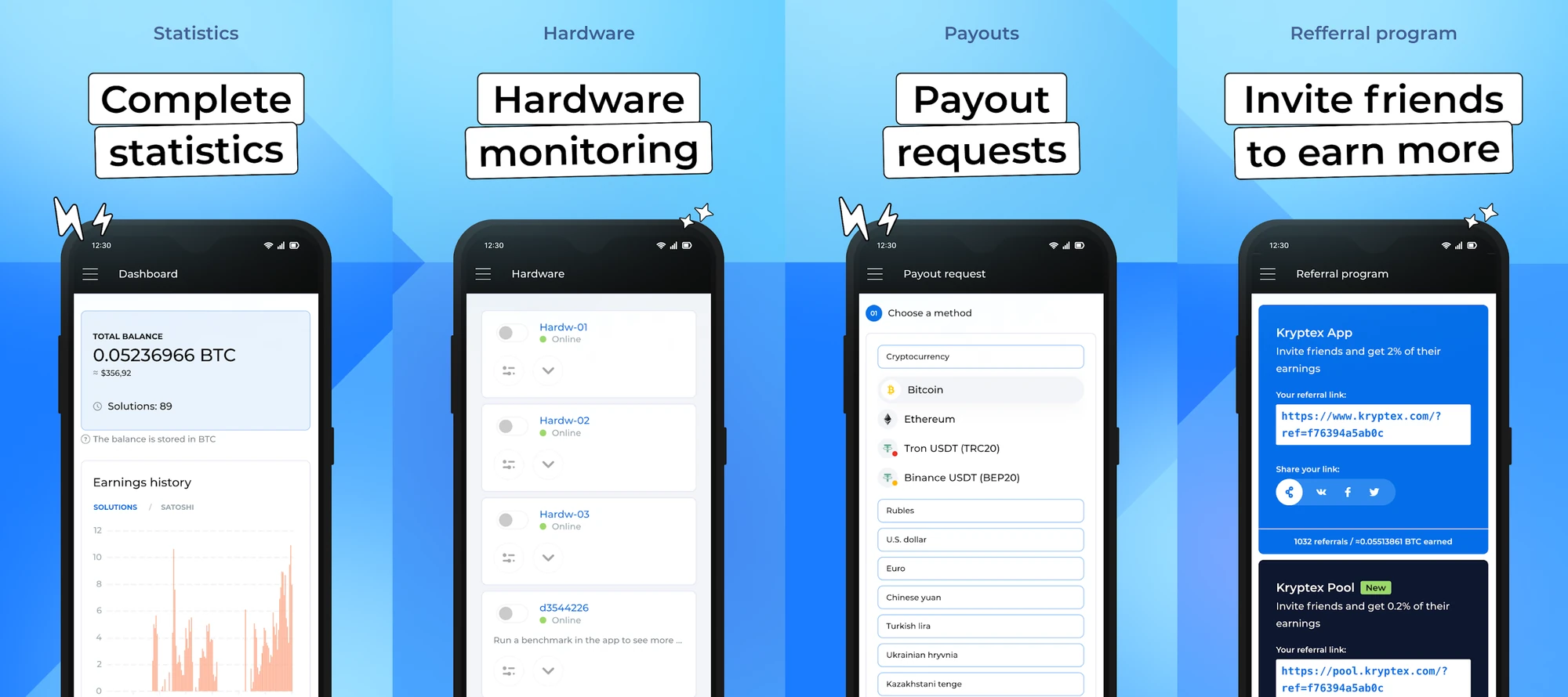 Download on iOS or Android: https://www.kryptex.com/en/mobile-app