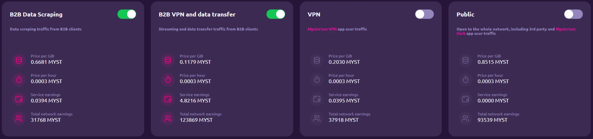 Adjust Mysterium Network Options: Control your income by turning on or off additional Mysterium Network options on your node: