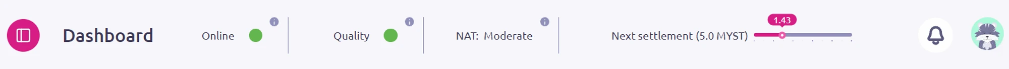 - Status — Indicates the status of your node and its monitoring by Mysterium.