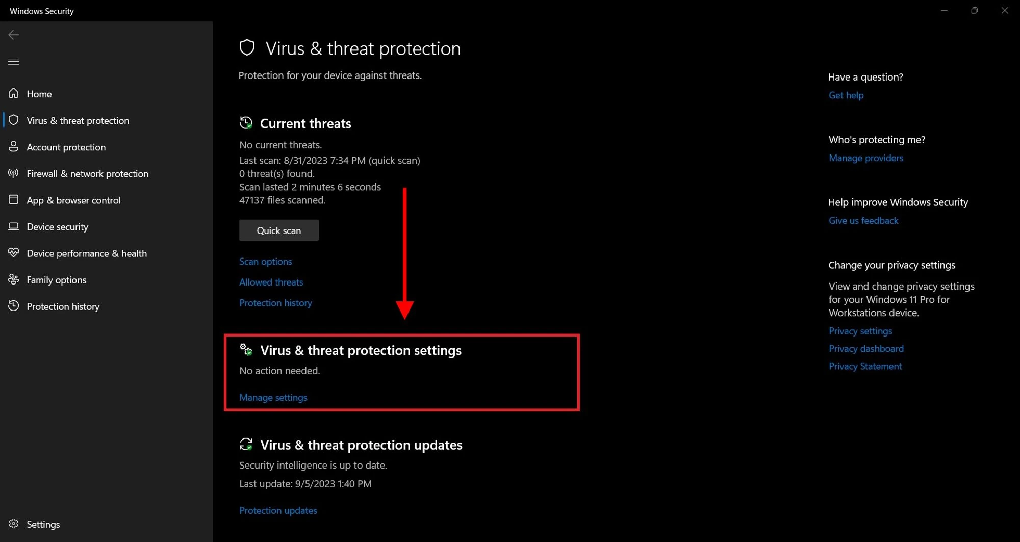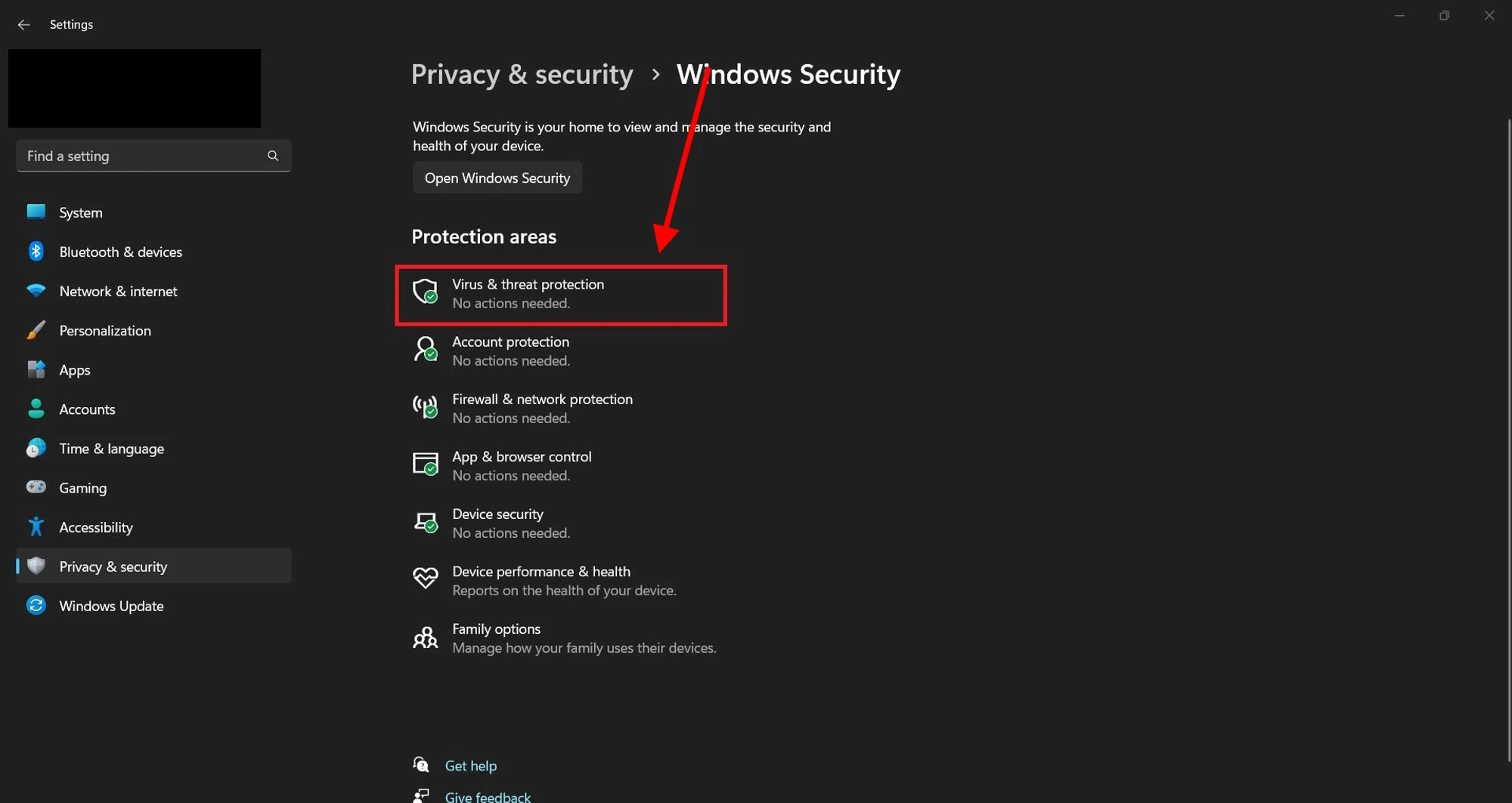 Go to the “Virus & Thread protection” section.