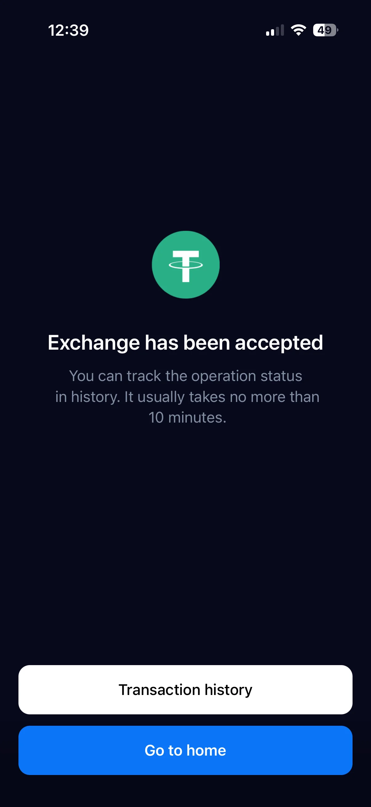 4. Готово, обмен успешно осуществлён. Средства поступят на счёт в течение 10 минут.