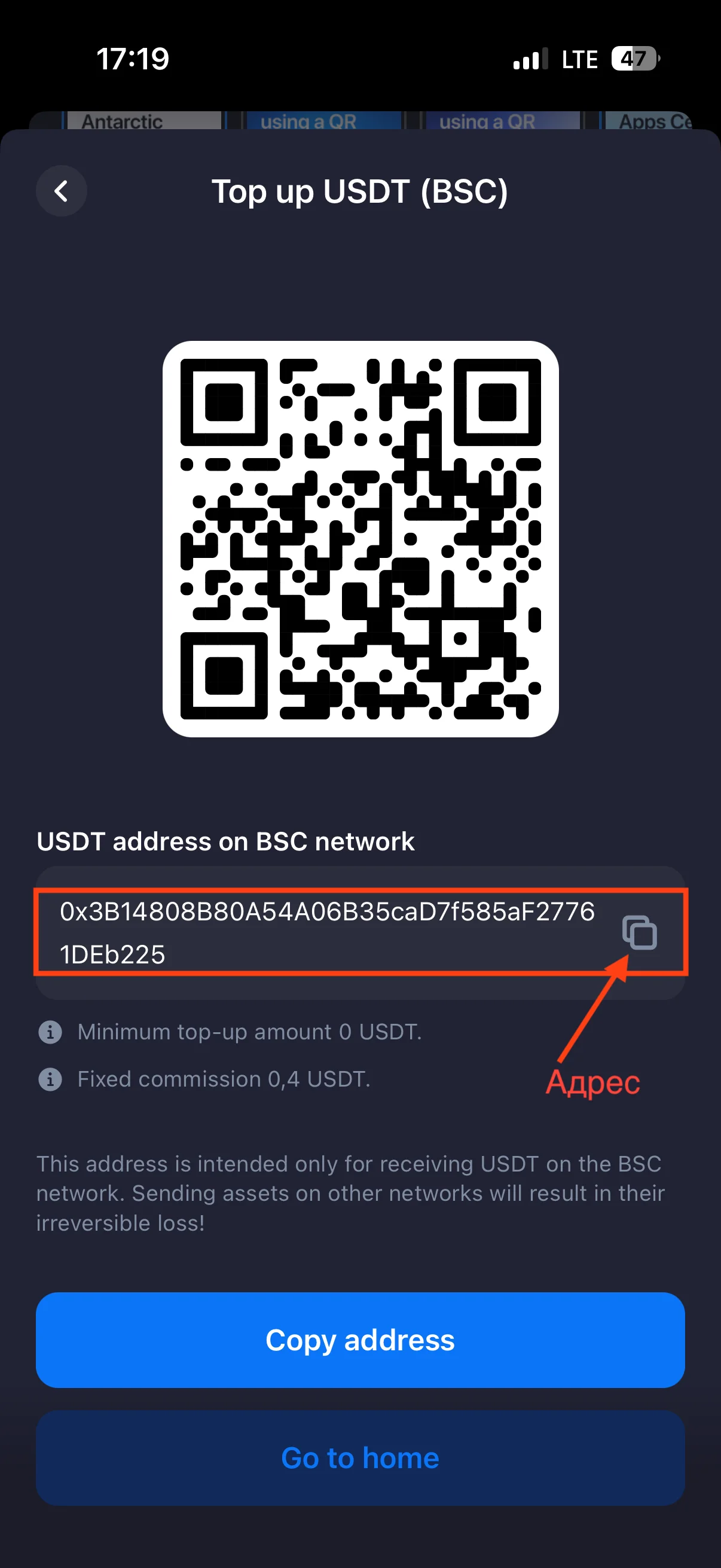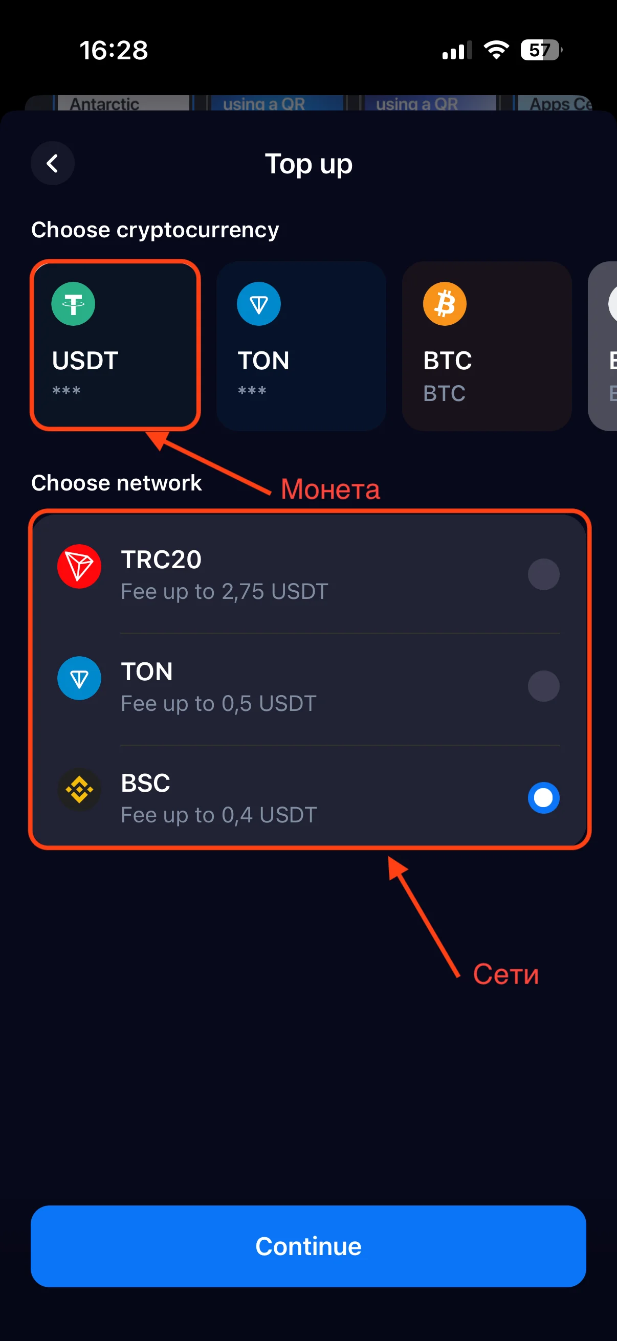 Доступны различные сети, мы будем рассматривать самый популярный USDT BEP20 (BSC).