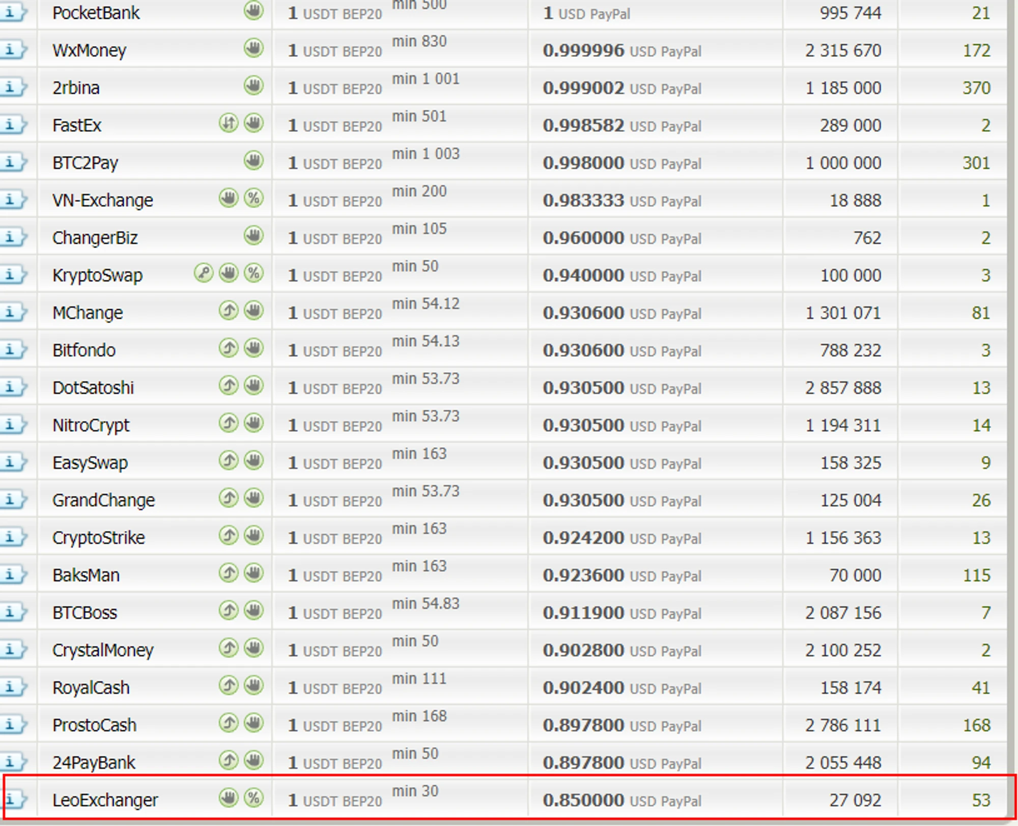 BestChange will find the most suitable exchangers for you and arrange them by rate;