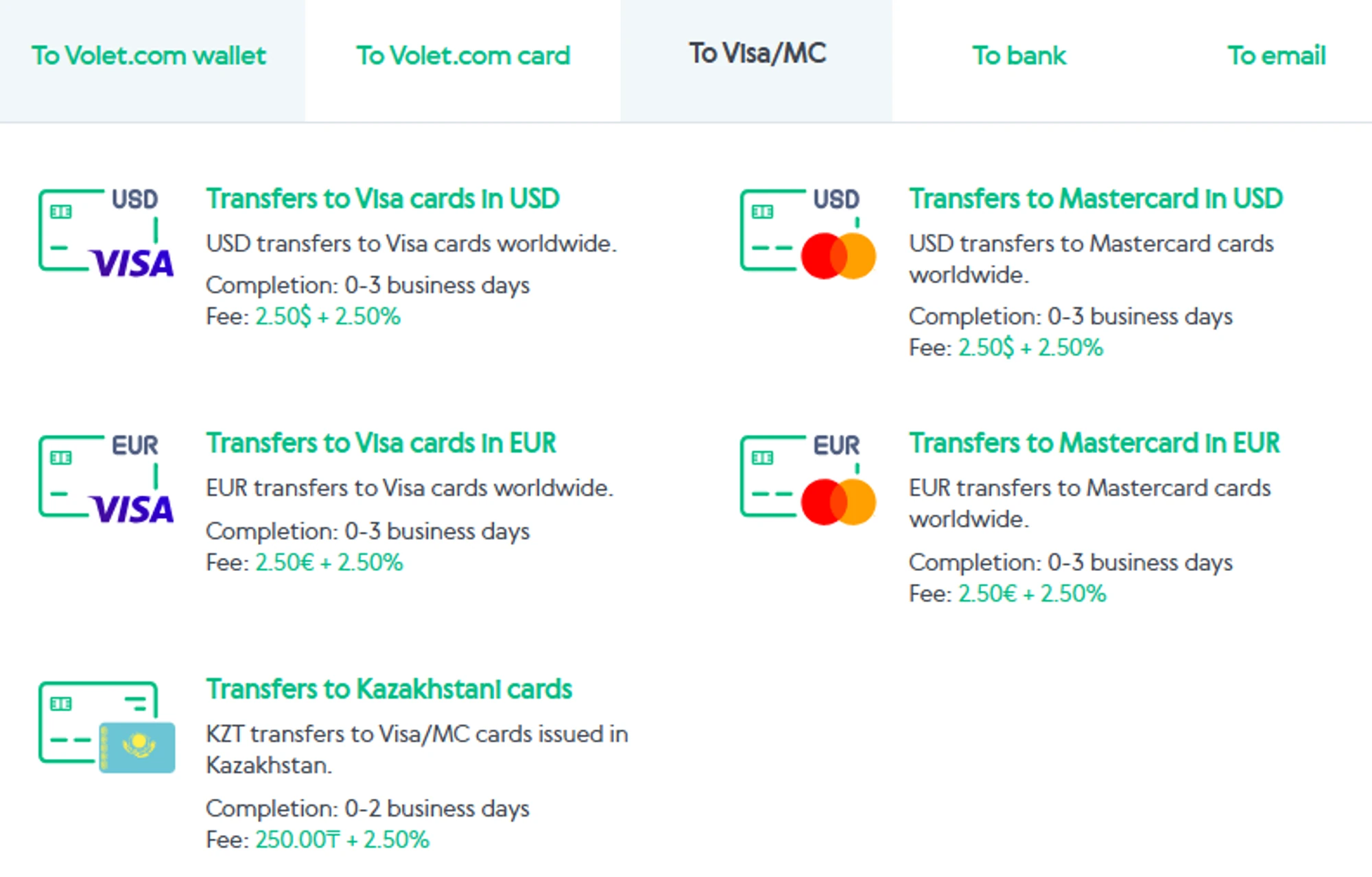 1. Once the payment arrives in your Volet account, select “Send funds to Visa/MC card.”