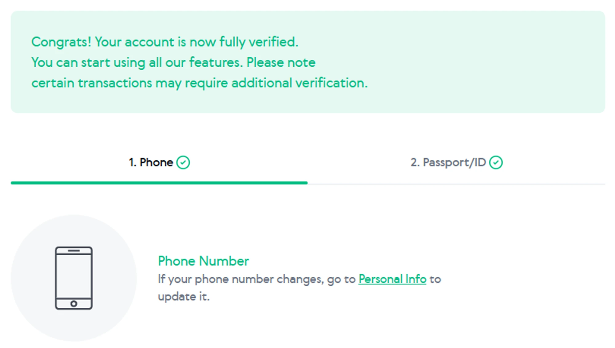 • Without verification, you will be unable to withdraw money and will have limits on fund transfers.
