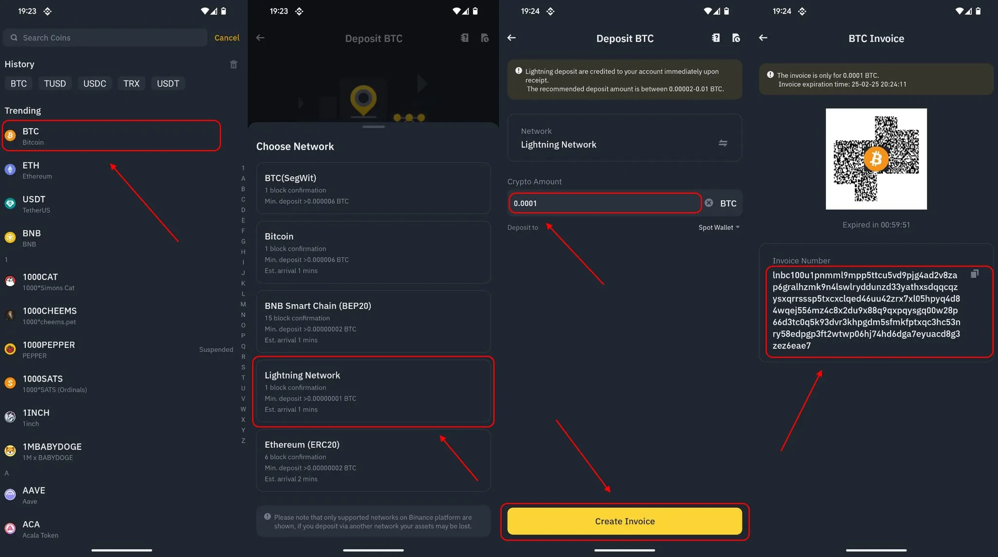 Create an invoice to receive Bitcoins in your wallet or exchange. Let's take Binance as an example.