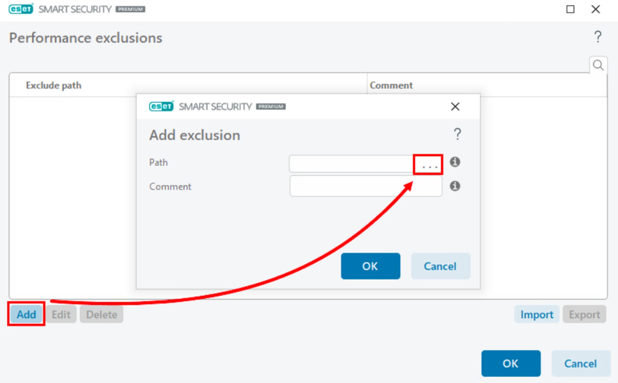 Click ”OK” and once again ”OK” to save the exclusion.