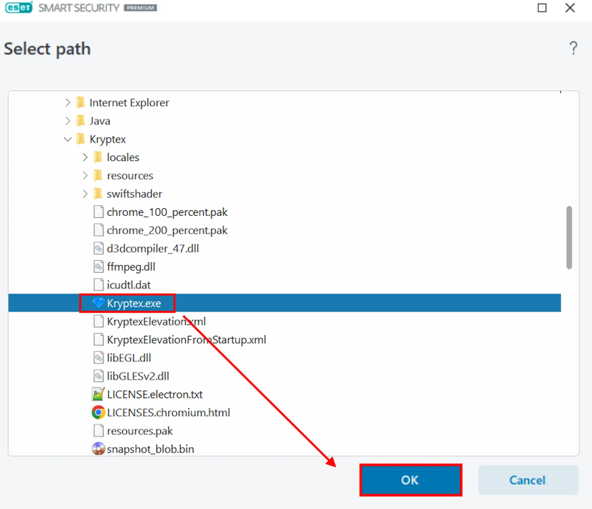 How to add Kryptex to ESET antivirus exclusion?